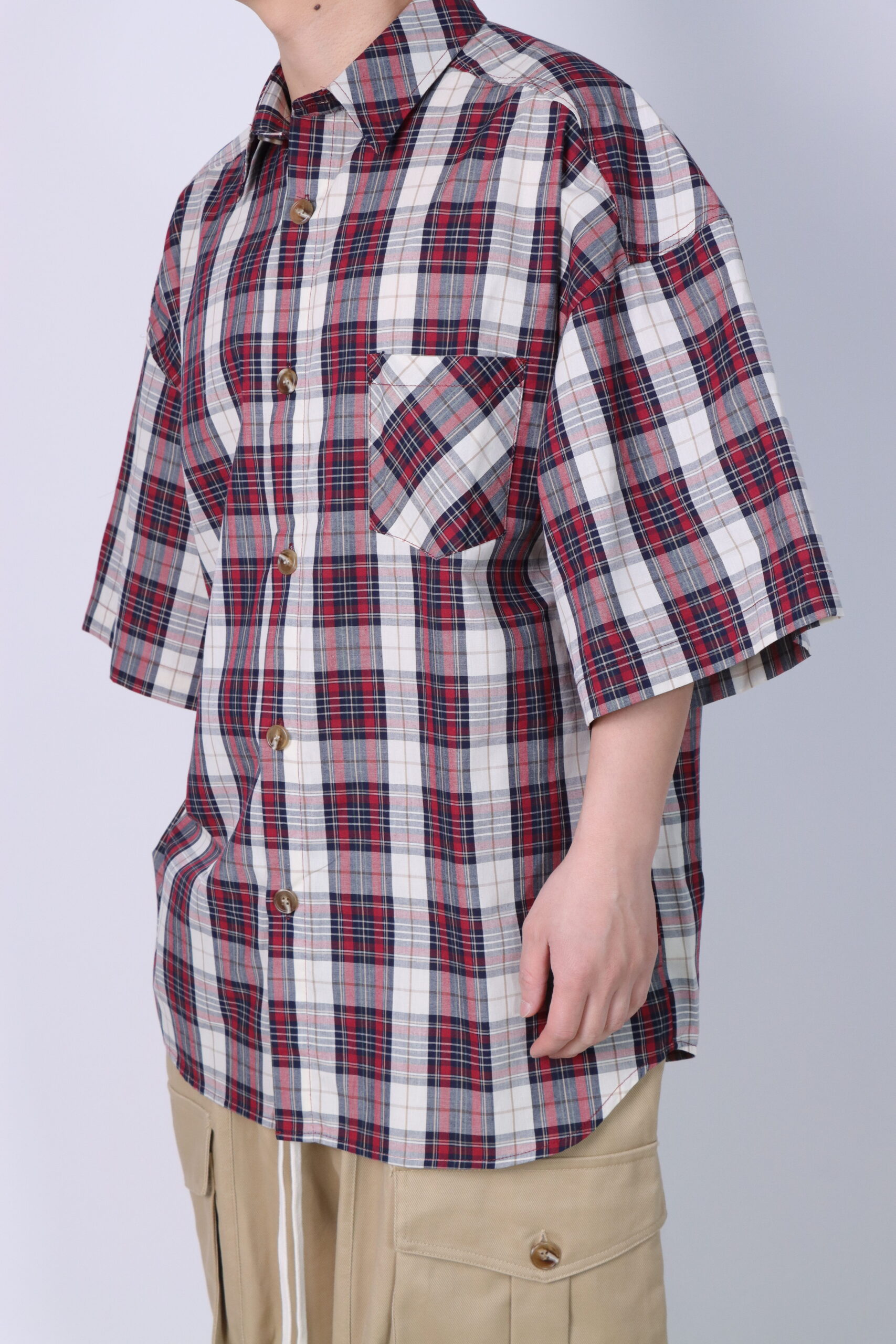 Camicia Super Oversize manica corta a Quadri Rosso/Bianco/Blu Navy quantità